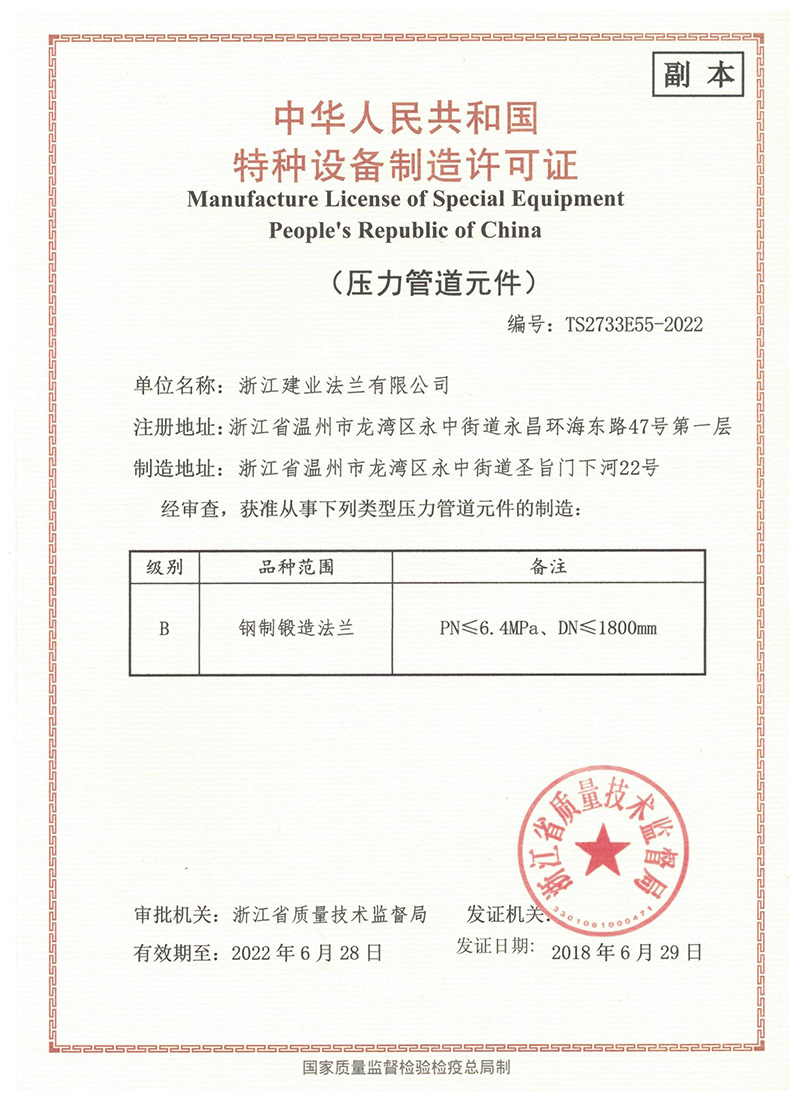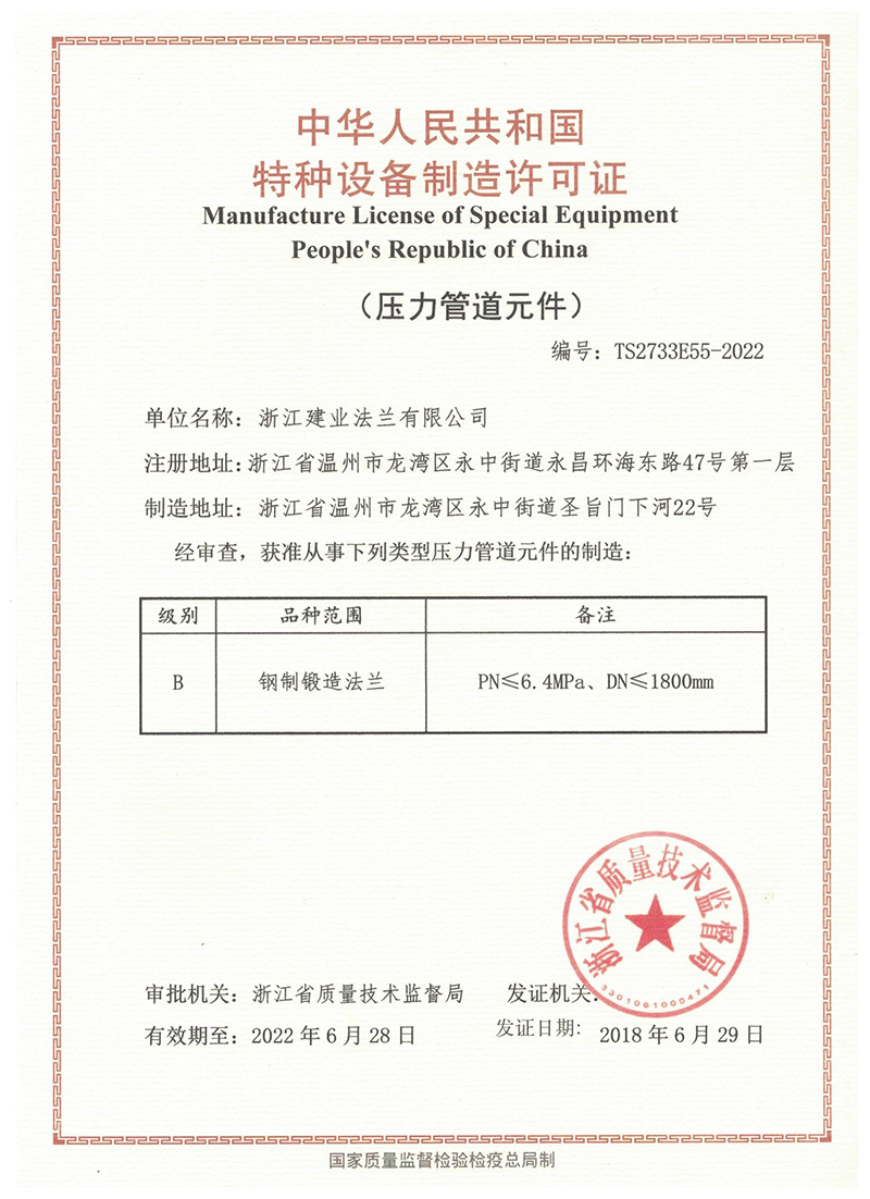 浙江建業法蘭有限公司,是一家集科研、設計開發、制造和經營各種管道法蘭等于一體的專業生產企業,公司以其特有的優勢與不懈的努力,在法蘭研制生產的行業領域中占領了一席之地。公司歷史悠久、實力雄厚、設備精良、品質一流,多年來憑借其雄厚的技術實力、科學的經營理念、先進的管理模式、過硬的團隊和精良的設備設施與卓越的品質贏得了市場認可和良好的市場聲譽,逐漸發展成為同行業的佼佼者。